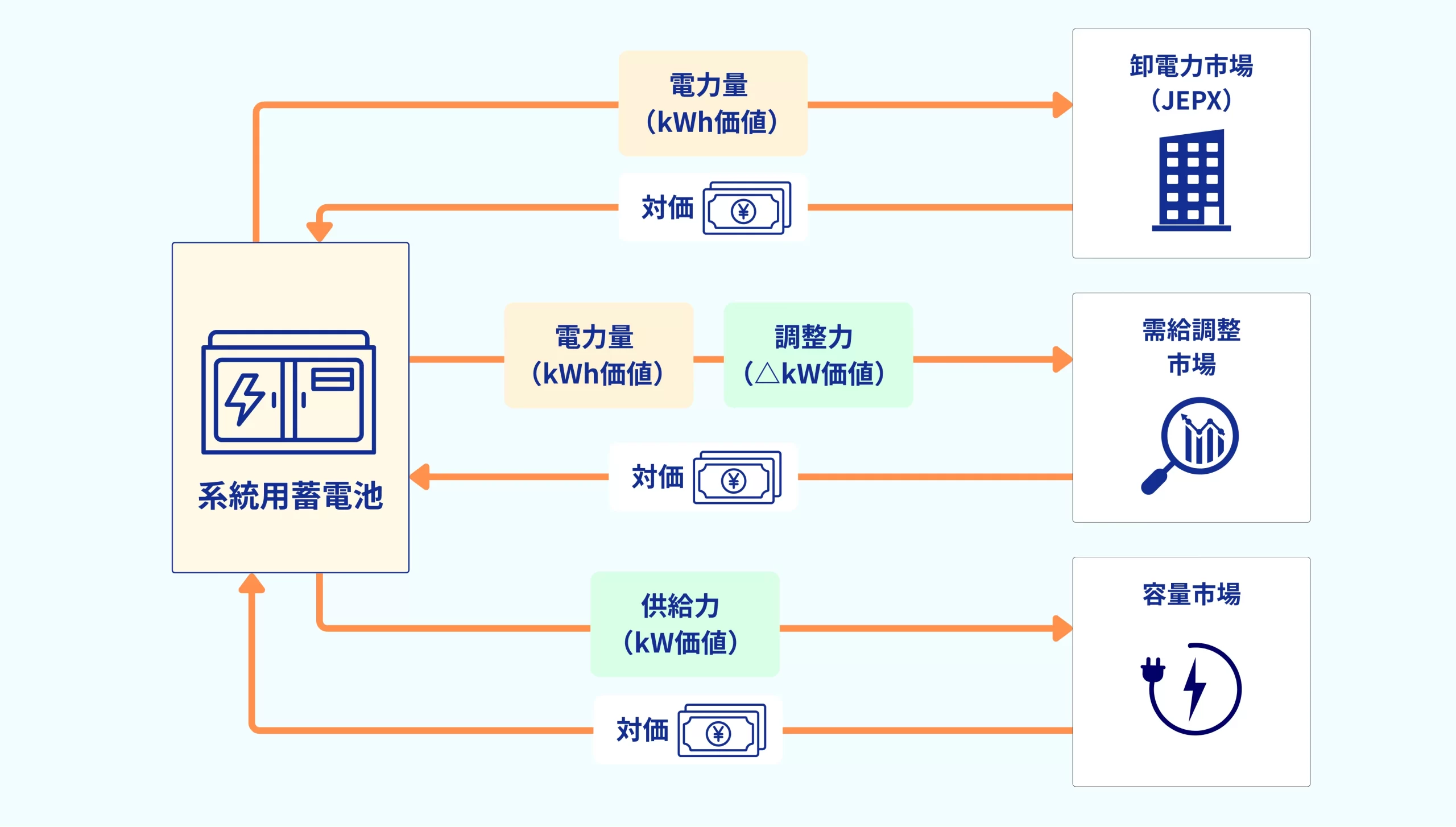 系統用蓄電池は、電力網に直接接続し、電力の需給バランスを調整する役割を